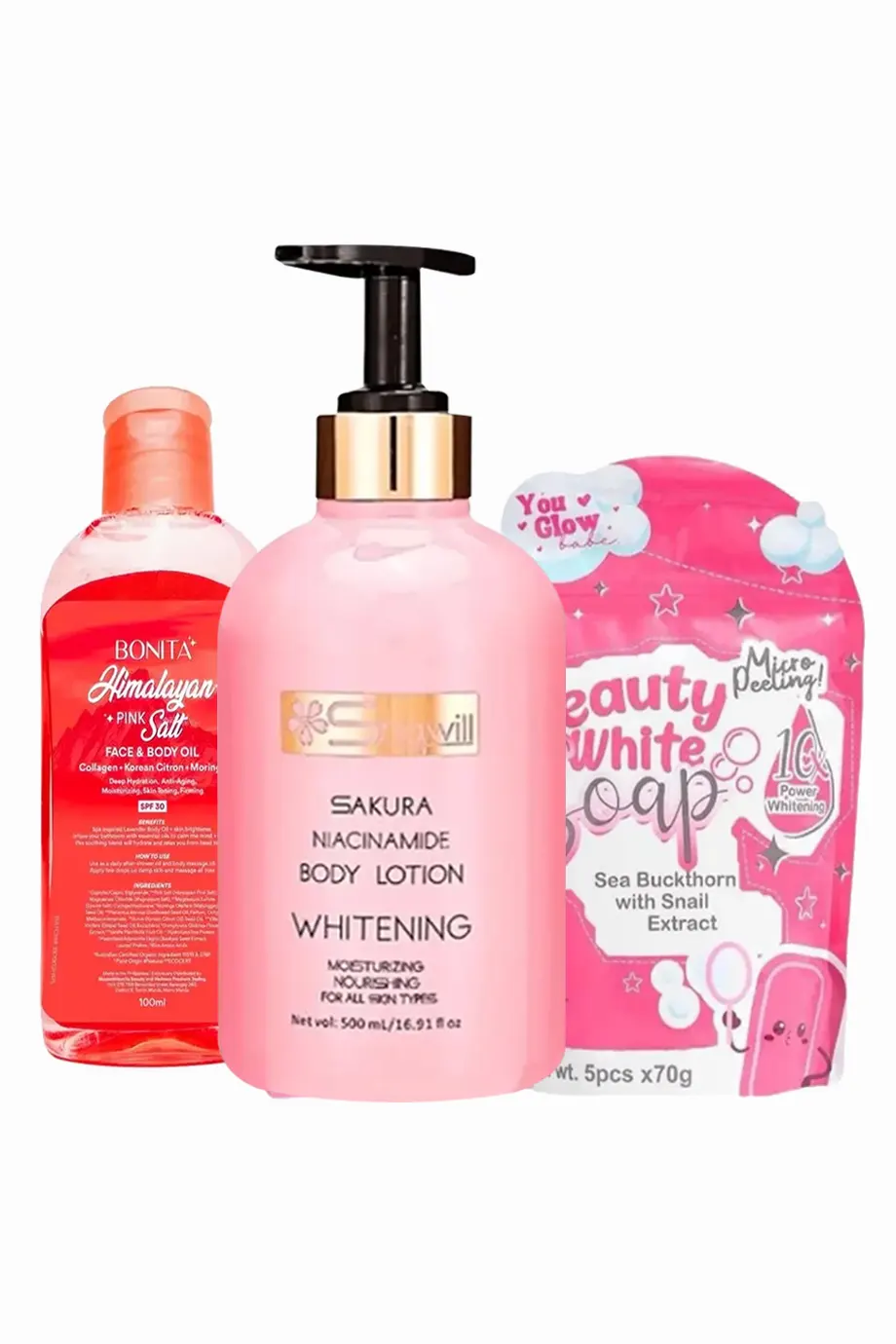 Glowing Skin Care Set – Shawill Lotion, Beauty White Soap & Bonita Oil for Whitening & Moisture