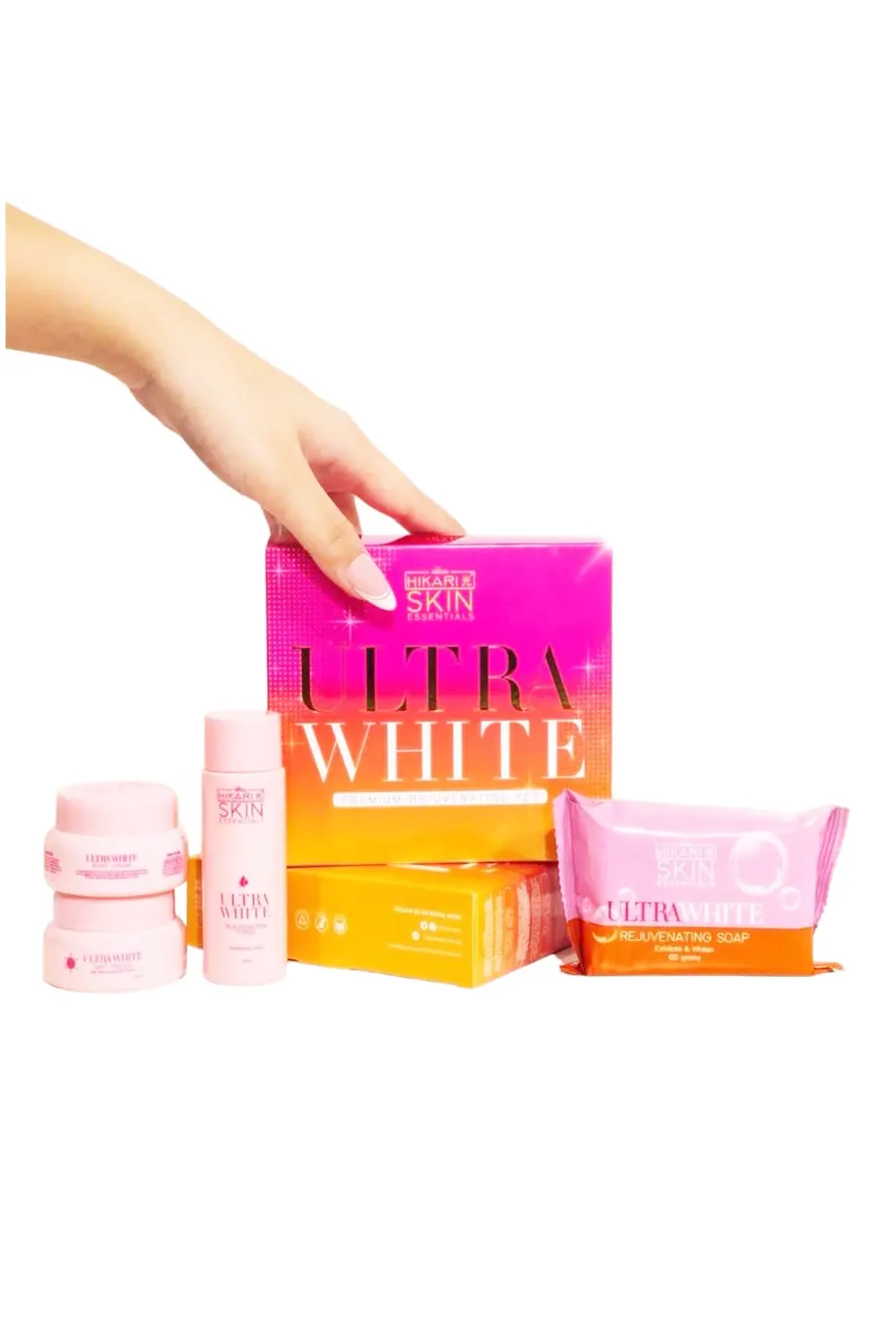 Ultra White Premium Rejuvenating Set by Hikari, a powerful skincare system designed to effectively address various skin concerns and promote a brighter, more youthful complexion. This rejuvenating set is carefully formulated to deliver remarkable results and is suitable for all skin types.